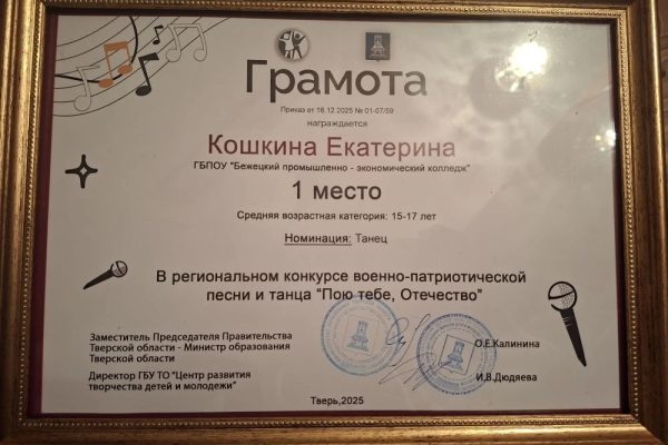 Бежецк, 22 декабря — МОЛОГА.ИНФО В Тверском областном Доме народного творчества состоялся гала-концерт регионального конкурса военно-патриотической песни и танца «Пою тебе, Отечество», посвященный 84-й годовщине освобождения Калинина от немецко-фашистских захватчиков. Определены победители и призеры творческого состязания. Всего на региональный конкурс «Пою тебе, Отечество» поступило более 300 видеозаявок от талантливых исполнителей и коллективов из всех муниципальных…