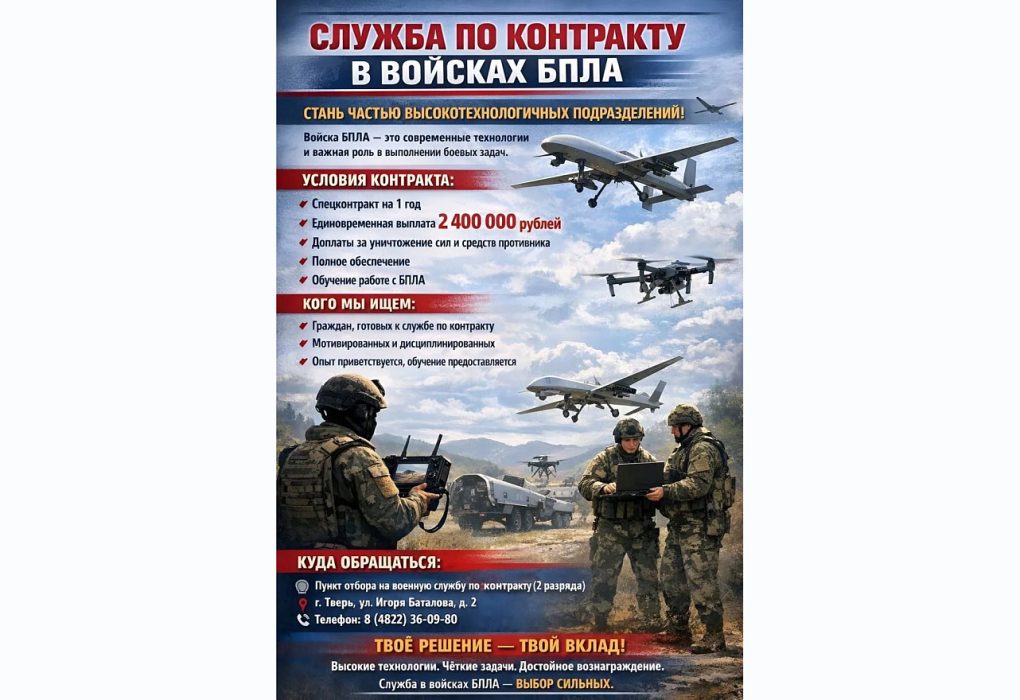 В Тверской области продолжается набор на военную службу в новые элитные войска беспилотных систем