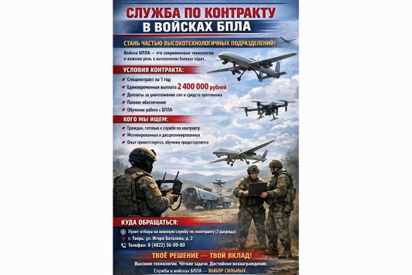 Тверская область, 7 марта — МОЛОГА.ИНФО В Тверской области продолжается набор на военную службу по контракту в новые элитные войска беспилотных систем Вооруженных Сил Российской Федерации. В новых войсках могут служить не только мужчины, но и женщины. При этом кандидаты должны соответствовать ряду требований: образование не ниже среднего профессионального, знание английского языка на базовом уровне,…