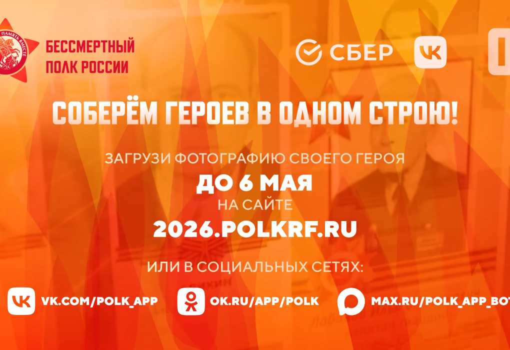 Россия, 24 апреля — МОЛОГА.ИНФО Цифровое шествие героев Великой Отечественной войны пройдет в День Победы, объединяя поколения и сохраняя память о победителях. Как принять участие: Традиционно, технологическим партнером акции выступает Сбер, медийным партнером акции — VK. Онлайн-шествие 9 мая начнется в 12:00 по местному времени на сайте 2026.polkrf.ru и экранах всей страны. Первыми цифровое шествие…
