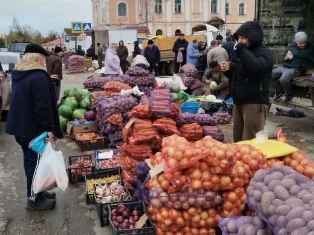 Традиционно самым востребованным овощем осенней ярмарки был картофель. Его в ассортименте продавали местные производители – колхоз “Красная Звезда”, КХ Виктория, а также гости из Кесовогорского округа и города Бежецка.