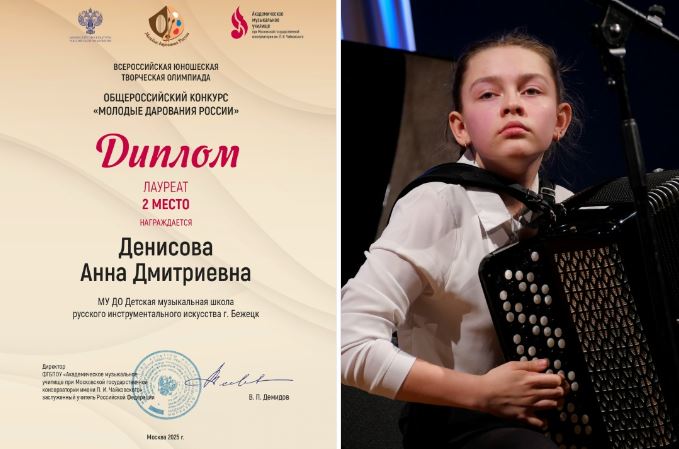 Среди представителей Тверской области в номинации «Народные и национальные инструменты» в этом году была обучающаяся Детской музыкальной школы русского инструментального искусства Денисова Анна, класс преподавателя Дядюшко Виктории Фёдоровны.