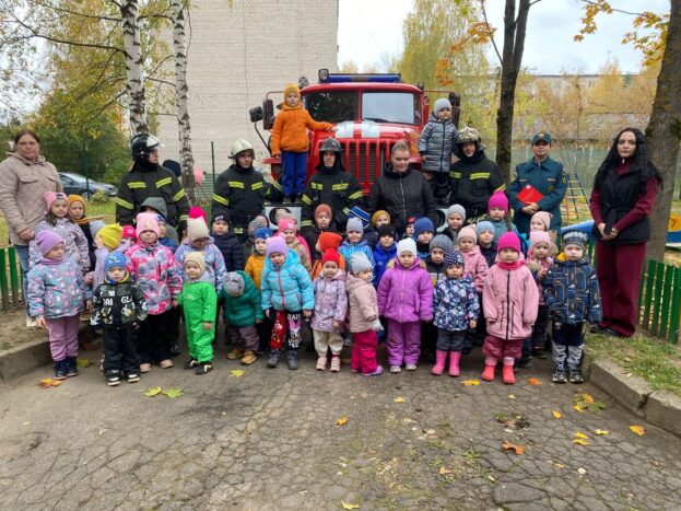 Огнеборцы 1-го караула 22-й ПСЧ организовали выездную экскурсию на пожарной технике для малышей детского сада.