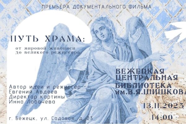 Бежецк, 10 ноября – МОЛОГА.ИНФО В Бежецкой центральной библиотеке им. В.Я. Шишкова состоится премьера документального фильма “ПУТЬ ХРАМА: от мировых живописцев до великого режиссера” (12+). …Далеко в Тверской области, в селе Еськи, скрыт от взоров мира интересный исторический артефакт – древний храм с уникальными росписями. Этот храм, внешне скромный, хранит в себе три истории художников…
