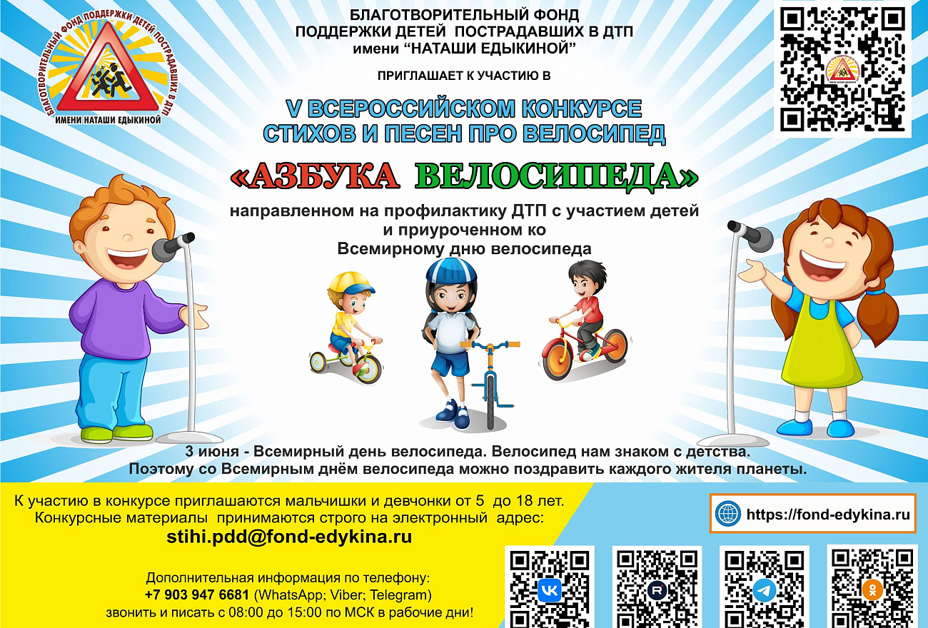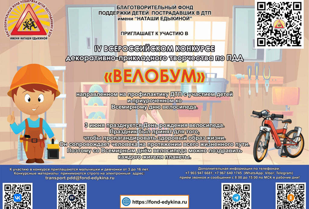 Детей и подростков Тверской области приглашают проявить свои таланты на V всероссийском конкурсе чтецов «Азбука Велосипеда». Видеоработы и презентации ждут на IV всероссийском конкурсе «Берегись – велосипед!». А произведениями декоративно-прикладного искусства дети могут поделиться в рамках IV всероссийского конкурса «Велобум».
