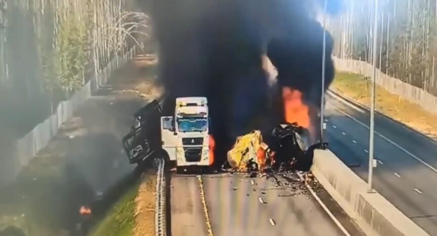 В результате ДТП 2-х грузовых и 1 легкового автомобиля на 194 километре САД М-11 в Калининском муниципальном округе произошло возгорание транспортных средств.