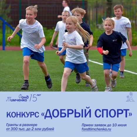 В конкурсе Фонда Тимченко «Добрый спорт» могут принять участие организации Тверской области, реализующие проекты по развитию детского любительского массового спорта.