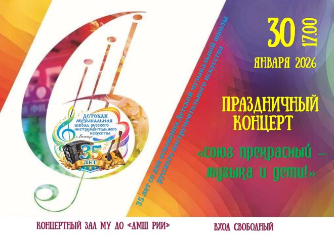Уважаемые бежечане и гости города, обучающиеся и родители, выпускники и преподаватели! МУ ДО «ДМШ РИИ» приглашает вас на праздничный концерт «Союз прекрасный — музыка и дети!», посвященный 35-летию со дня основания Детской музыкальной школы русского инструментального искусства.
