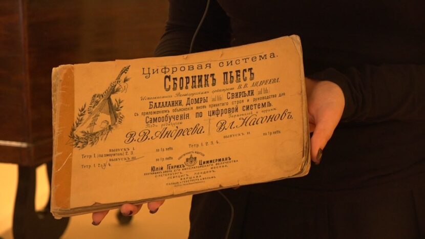 “Во время проведения Международного фестиваля “Андреевские дни” нашему музею был передан сборник пьес, исполняемых Великорусским оркестром В.В. Андреева, 1898 года издания. Сборник хранился около 50-ти лет у преподавателя детской школы искусств г. Кимры и участницы ансамбля русских народных инструментов “Калинка” Светланы Борисовны Кораблиной. Этот сборник станет значимым экспонатом Андреевской коллекции Бежецкого музея и будет бережно храниться многие годы”.