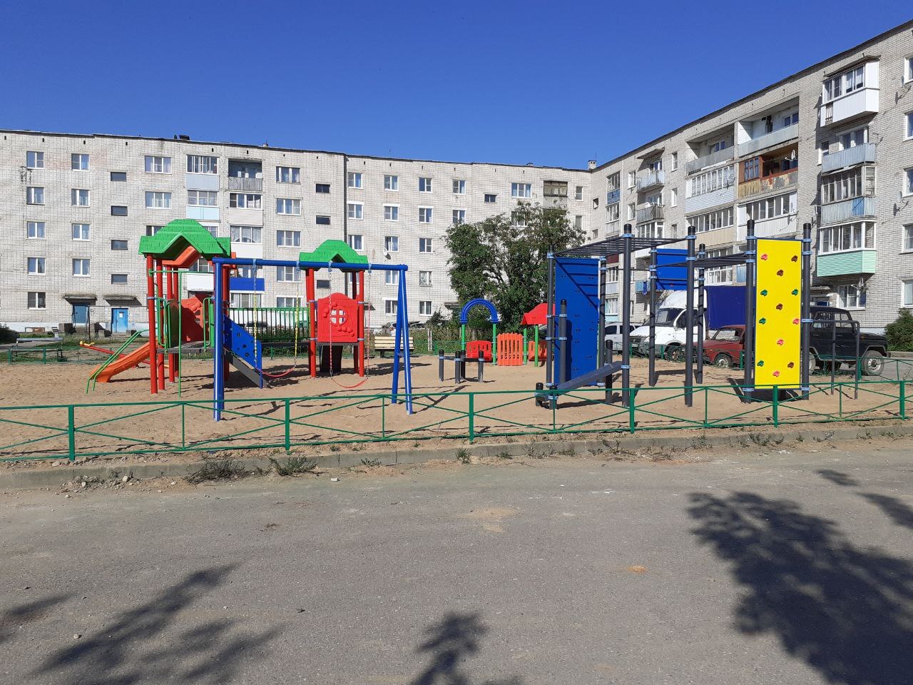 На междворовой территории по адресам ул. Спортивная, д. 19 и ул. Пролетарская, д. 46 завершается обустройство новой современной детской игровой зоны.