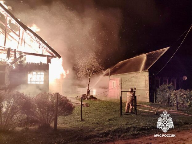 В результате пожара одно строение уничтожено полностью, во втором уничтожена кровля, повреждена внутренняя отделка. Пострадавших нет.