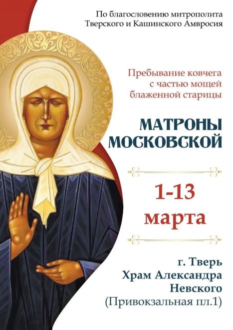 - В Твери пройдет пребывание ковчега с мощами блаженной Матроны Московской