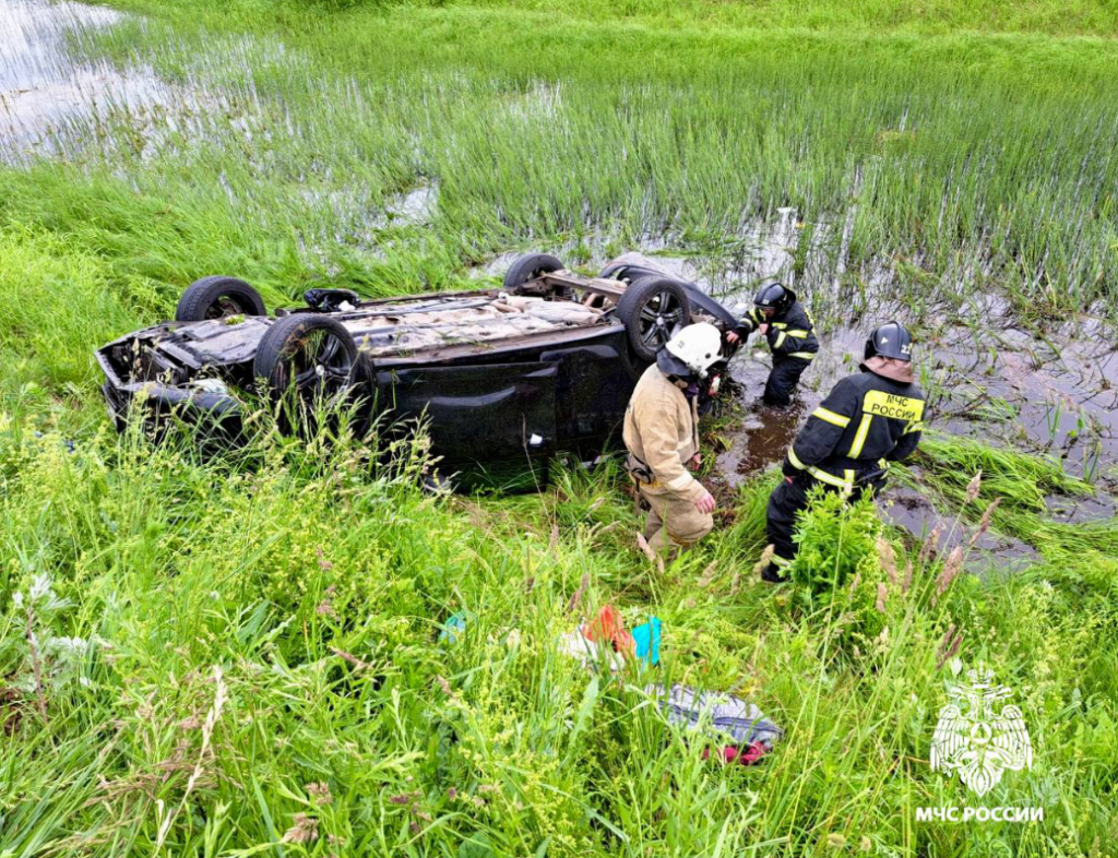 Очевидцы помогли водителю легкового автомобиля выбраться из транспортного средства до прибытия спасателей.