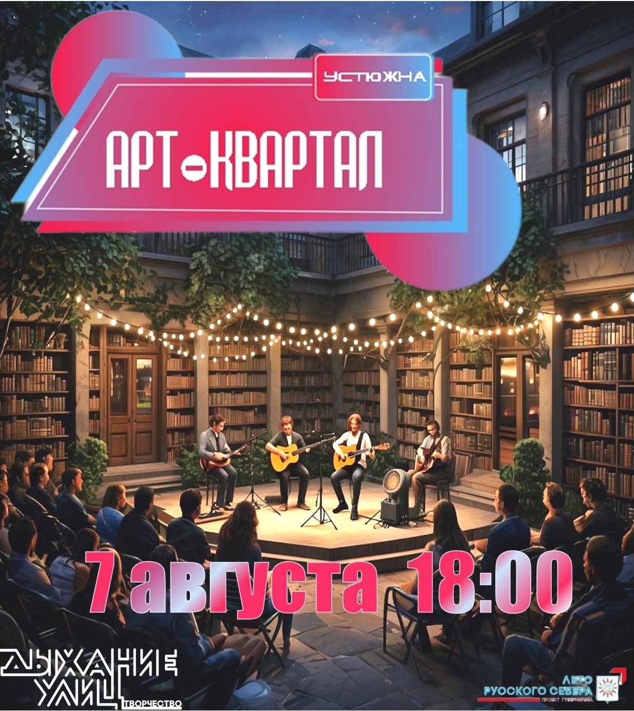 7 августа в Устюжне состоится второй открытый фестиваль «Устюжна. Арт-квартал». Он пройдёт на площадке у здания Устюженсой центральной библиотеки им. Батюшковых, в уютном библиотечном дворике, и начнётся в 18:00.