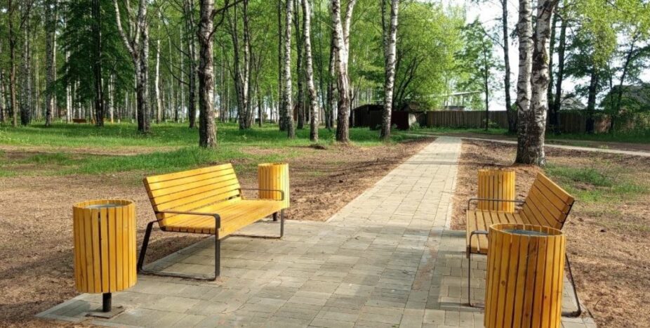 Убраны аварийные деревья, вымощены дорожки, подсеян газон. Парковые скамейки и урны оформлены в том же ключе, что и на ранее обустроенной территории.