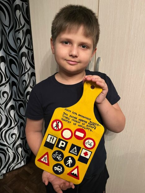 Восьмилетний бежечанин Фуркатулло Бухораков принял участие в III Всероссийском конкурсе декоративно-прикладного творчества по ПДД «ДОРОЖНЫЕ ЗНАКИ – РУКАМИ ДЕТЕЙ», приуроченном ко Всемирному дню памяти жертв ДТП.