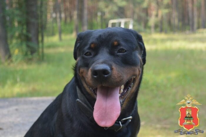 На место была вызвана следственно-оперативная группа и кинолог со специально обученной служебной собакой. Ротвейлер Боня сразу же взял след и обнаружил сумку со 100 свёртками с неизвестным веществом.